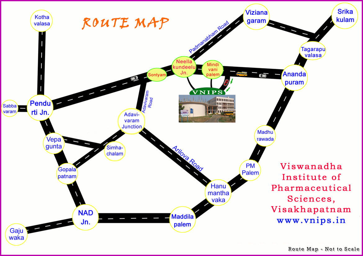 | Tele contact Numbers: Principal : 09440895977 Vice-Principal : 09985407591 Exam Cell : 08977774445 Office : 08886152828 Admissions : Mrs. Bhagyasree: 07013884208 e-contacts: E-mail Official purpose: principalvnip@yahoo.co.in E-mail Help Desk : vnips.vizag@gmail.com Follow us at : www.facebook.com/vnips Facebook Page link : www.facebook.com/pages/Vnips/159455154150854 Twitter link : www.twitter.com/VnipsVizag Google plus link : https://plus.google.com/+VISWANADHAPHARMA linkedin :http://in.linkedin.com/in/VNIPS Web : www.vnips.in and www.viswanadhapharmacy.in Postal Address: Viswanadha Institute of Pharmaceutical Sciences (VNIPS), Mindivanipalem (V), Sontyam (P), Anandapuram (M), Visakhapatnam – 531173, Andhra Pradesh, India. Administrative City Office: D.No 1-44-1/1/1, Plot No. HIG-12, Sector-1, MVP Colony, Visakhapatnam-530017, Andhra Pradesh, India. Phone: 0891-2539007/ 2539008/2539009/ 2539025 Fax: 0891-2561088 |